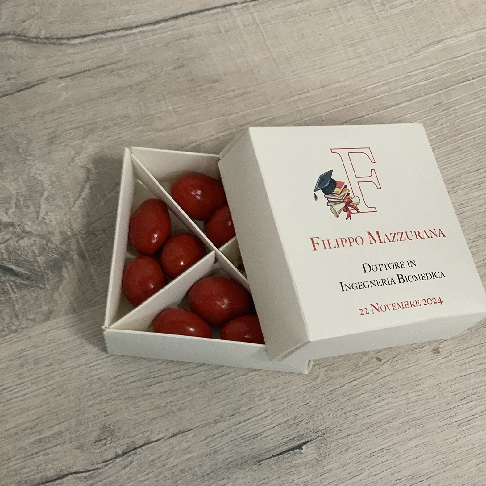 | Caratteristiche del materiale: | Scatoline porta confetti o piccoli oggetti realizzate in cartoncino pregiato avorio o bianco. Stampa personalizzata compresa nel prezzo. Misure modificabili. Chiedere preventivo a: info@partecipazionisposi.it oppure 3755670996 |
