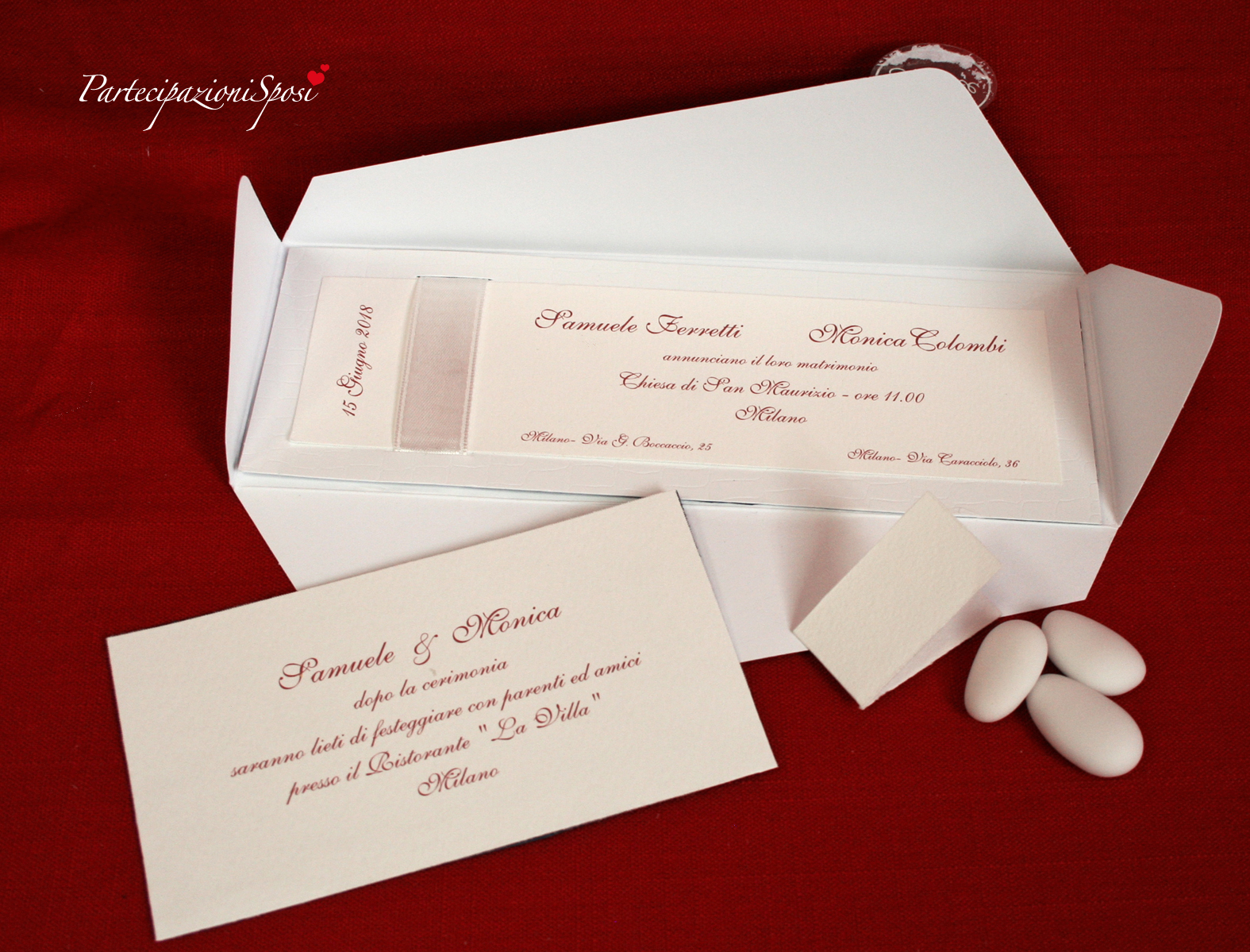 Da trent’anni Bograf conquista i cuori dei futuri sposi: l’ottimo rapporto qualità prezzo, il ricco assortimento di biglietti bomboniera e il nuovo servizio di e-commerce soddisfano anche le esigenze più particolari. Collegatevi al nostro portale: troverete biglietti bomboniera con decoro in oro a caldo coordinati alla partecipazione, bigliettini in cartoncino madreperlato, segnaposto, menù e altro ancora.
