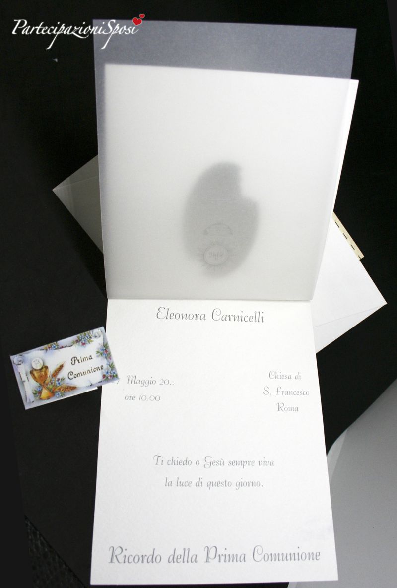L'interno del biglietto va personalizzato e utilizzato sia come Ricordo della Prima Comunione che come invito alla cerimonia e ai festeggiamenti in base alle proprie esigenze.