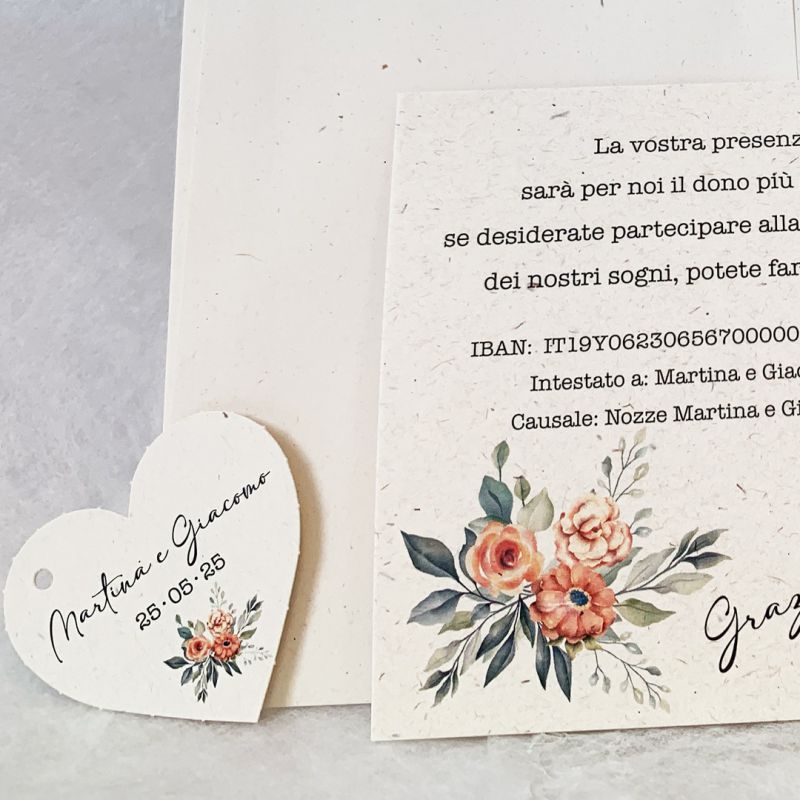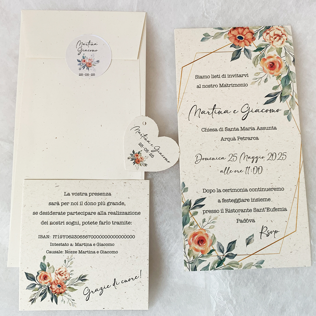 | - Partecipazioni: | 21x10,5 invito stampato sulla partecipazione + busta 21x11 |