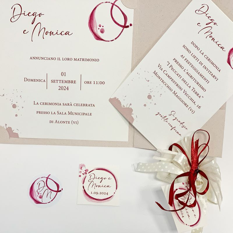 | - Partecipazioni: | 14,5x14,5 la tasca + annuncio 13x13+invito 6,5x11+lista nozze 8,5x13,5 |