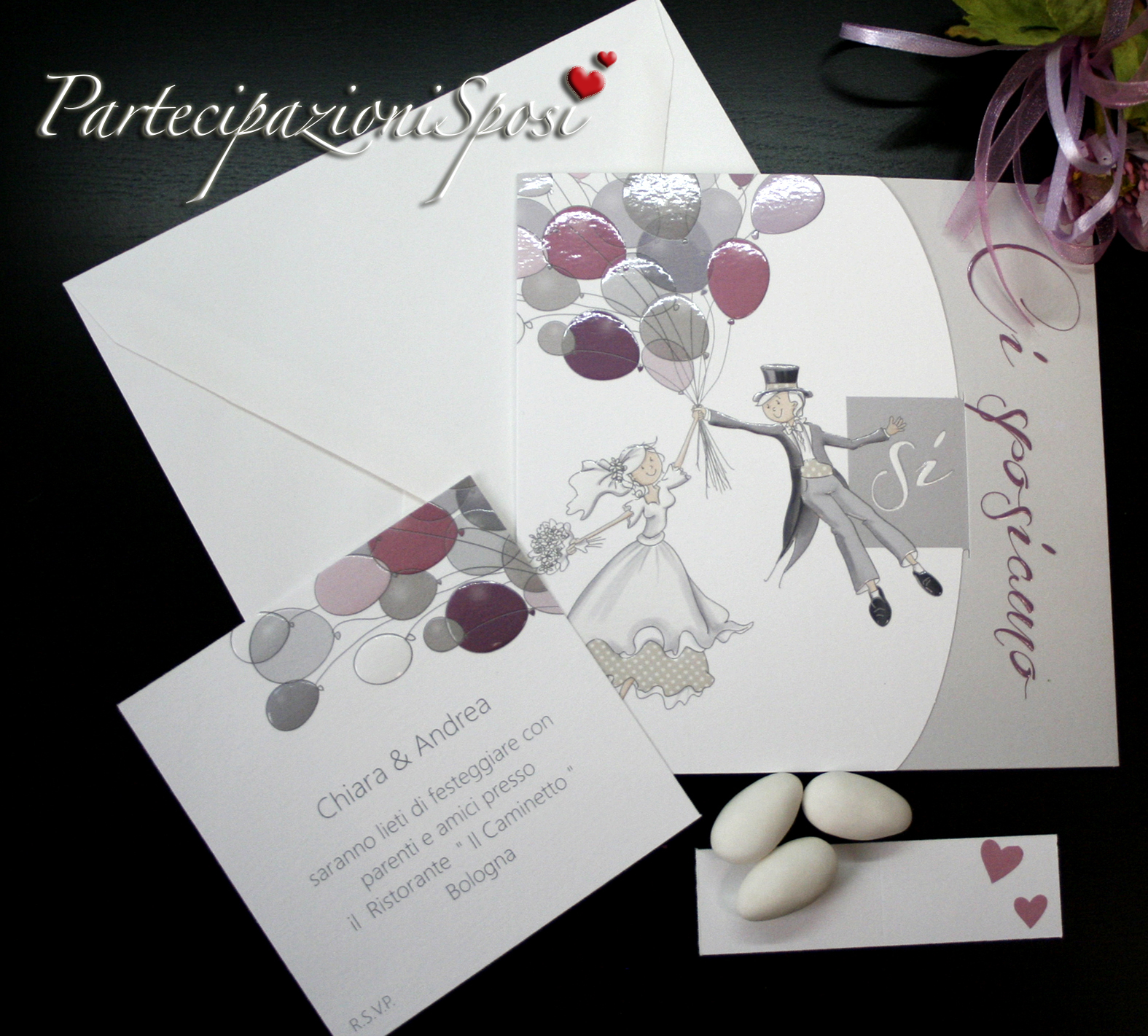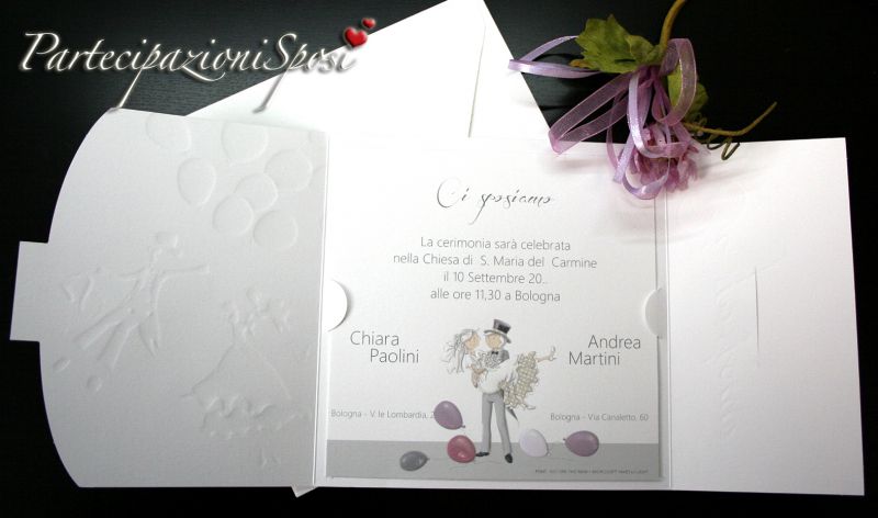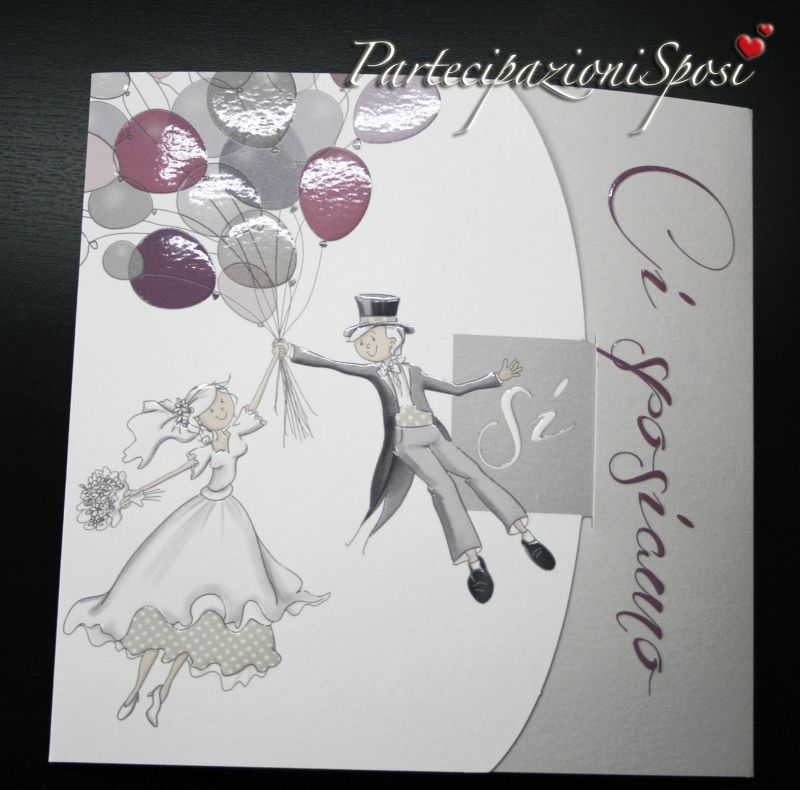 | Caratteristiche del materiale: | Simpatico invito di nozze composto da annuncio o partecipazione in cartoncino bianco con particolari in rilievo e verniciatura lucida, nel cui interno viene posizionato il cartoncino nello stesso stile con l'annuncio del matrimonio. L'invito coordinato è compreso nel prezzo. Ha sempre la lavorazione in rilievo e lucida sui palloncini. (INDICARE SEMPRE LA QUANTITA' DEGLI INVITI VISTO CHE AD OGNI PARTECIAPAZIONE CORRISPONDE UN UNVITO) Ad ogni partecipazione corrisponde 1 biglietto invito. Per la lista nozze o IBAN verrà stampato un cartoncino aggiuntivo. I bigliettini per le bomboniere sono coordinati e stampabili con nomi e data oppure nomi e ringraziano o qualche altra piccola frase a vostro piacimento. Le buste quadrate e bianche sono comprese nel prezzo.