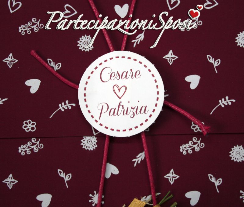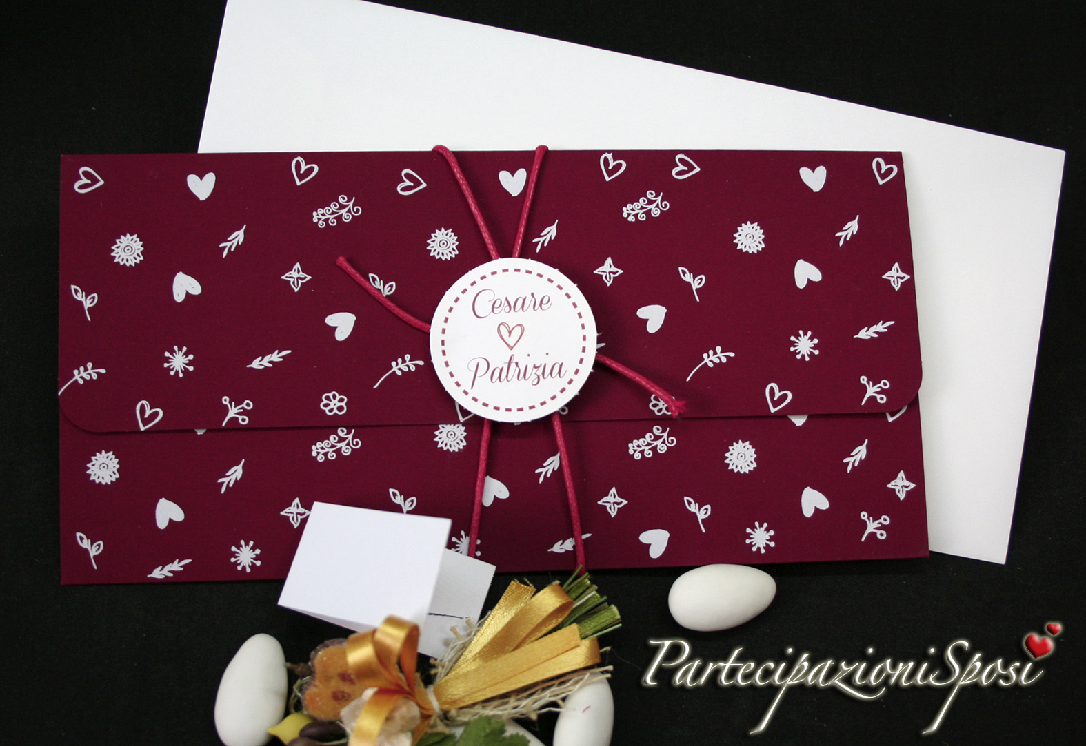 Moderne e originali partecipazioni di nozze di colore rosso bordò.