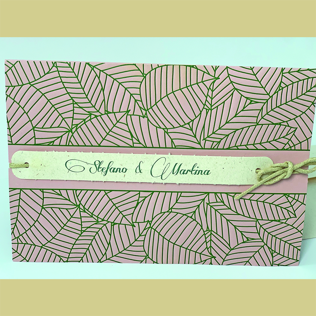 | Caratteristiche del materiale: | Annunci moderni con colore di tendenza rosa e stampa di foglie verdi. Annuncio, invito e tag con i nomi frontale sono realizzati in cartoncino naturare betulla. L'invito e i nomi frontali vengono legati alla tasca rosa con un cordoncino. L'invito è compreso nel prezzo della partecipazione. Ad ogni partecipazione corrisponde 1 invito. La busta è coordinata in carta betulla e compresa nel prezzo. Questa partecipazione è da assemblare. Per riceverla assemblata cliccare su "confezionamento".