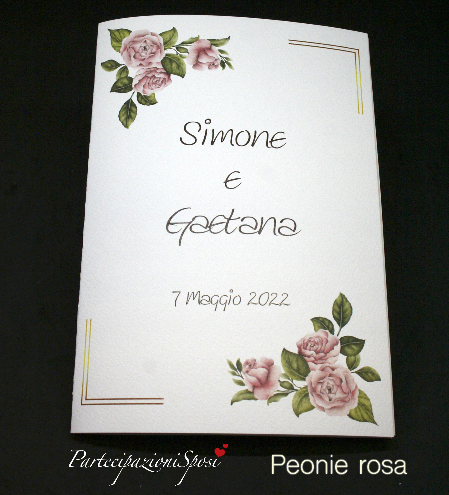 | Caratteristiche del materiale: | Libretto cerimonia in carta naturale stampato a colori Copertina in cartoncino naturale beige con fibre in vista. Stampa copertina a colori. (coordinato natural chic con fiori colorati) Interno con carta coordinata e stampa a un colore (consigliato colore nero) Rilegatura con punto metallico. Per il testo interno si accetta file in Word. Inviare tramite mail separatamente anche eventuali immagini a: info@partecipazionisposi.it Quantita' minima ordinabile pezzi 30. |