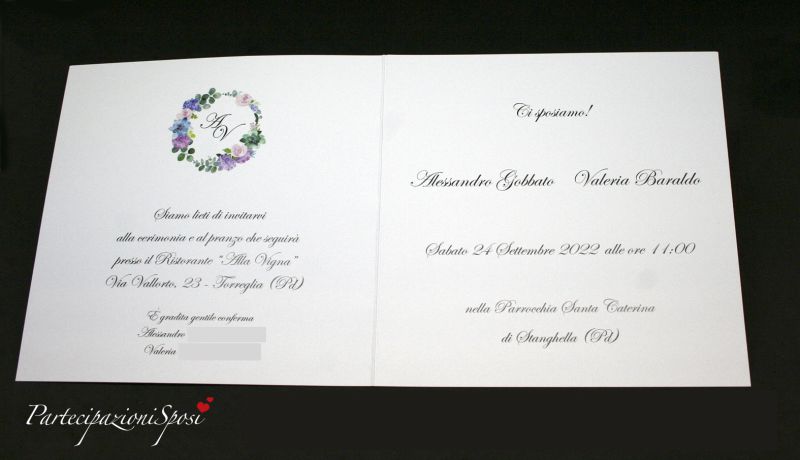 L'invito è stampato sullo stesso cartoncino con il testo dell'annuncio.