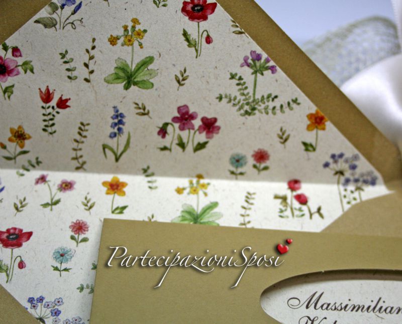 La busta che completa questo set è davvero particolare. In carta kraft come la copertina dell'annuncio e all'interno riporta lo stesso motivo floreale che fa da tema conduttore di questa partecipazione. La busta è compresa nel prezzo delle partecipazioni.