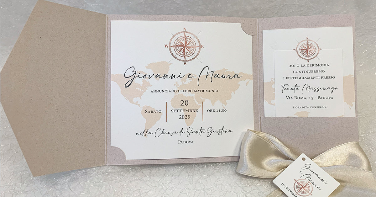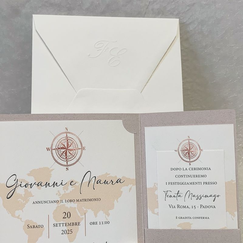 | - Partecipazioni: | 14,5x14,5 la tasca + annuncio 13x13+invito 6,5x11+lista nozze 8,5x13,5 |