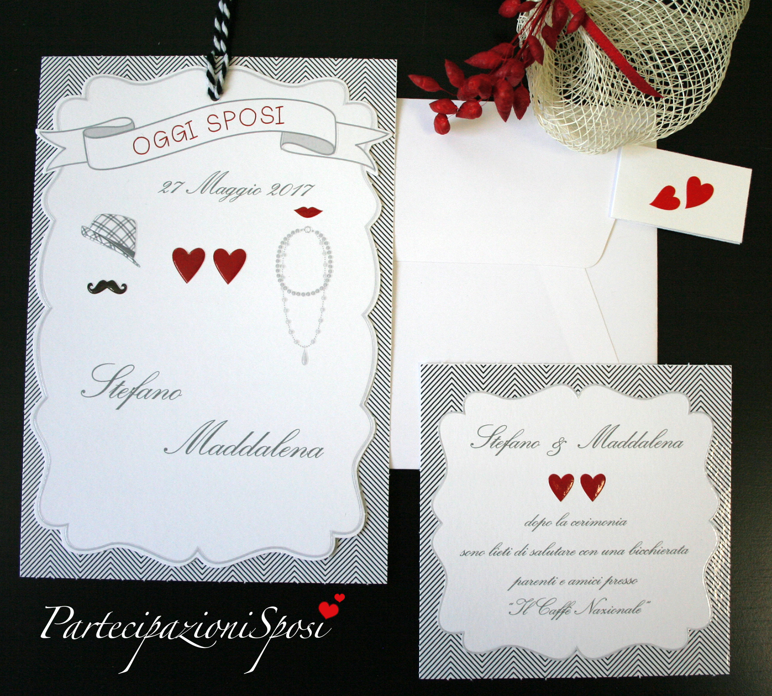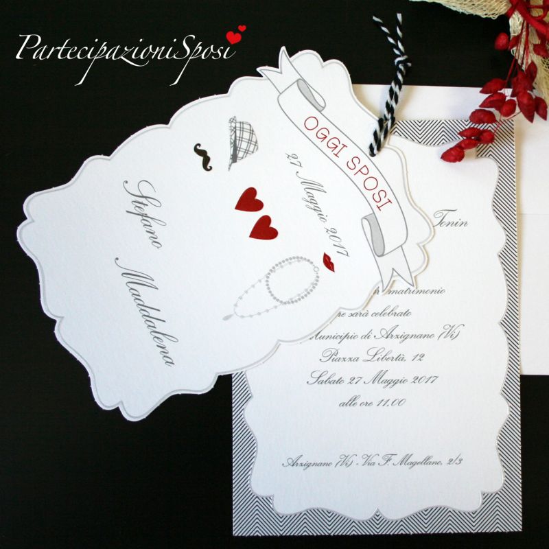Invito coordinato con rilievo e verniciatura lucida, compreso nel prezzo. (in caso di ordine indicare la quantità degli annunci e anche degli inviti)