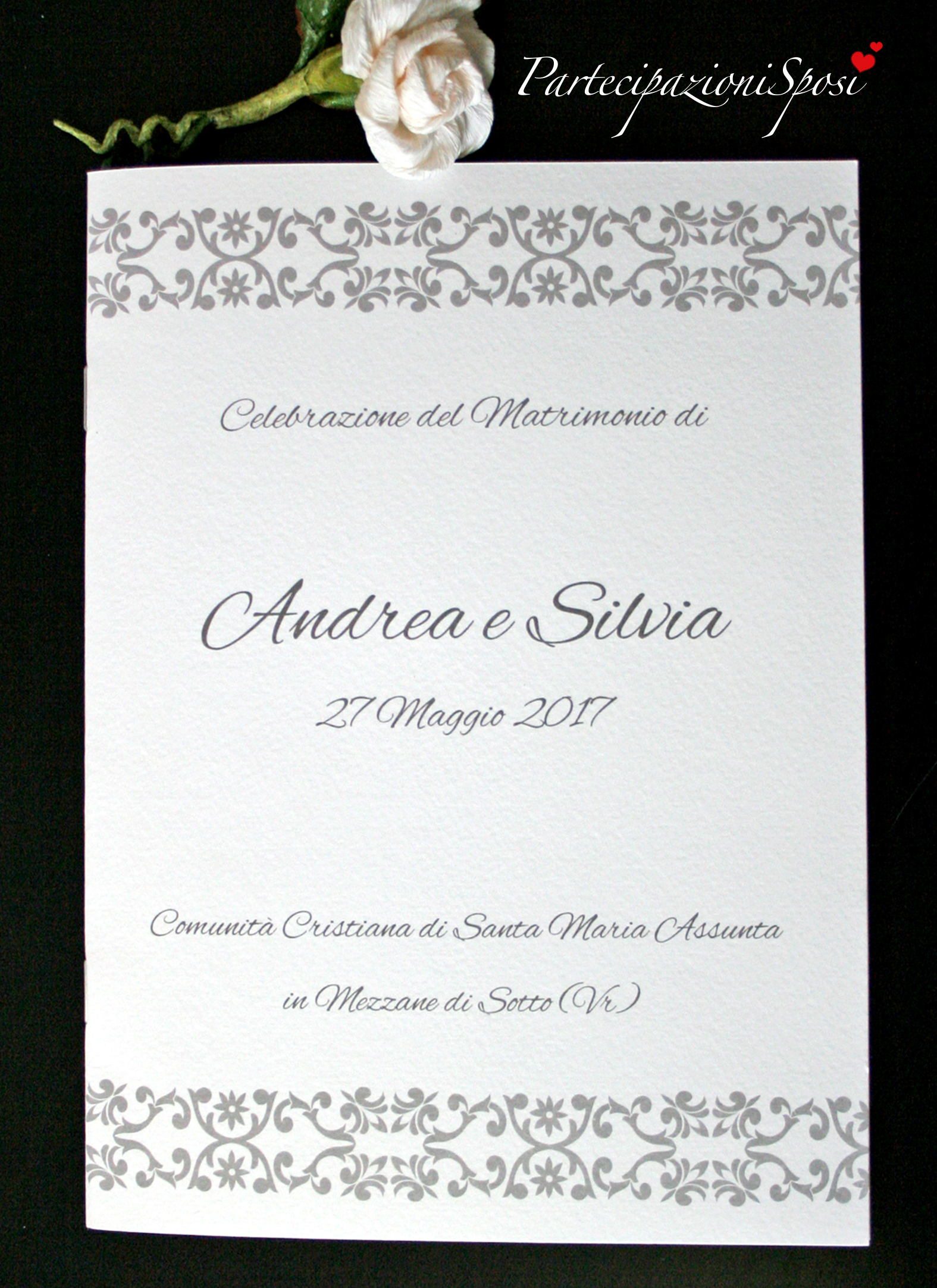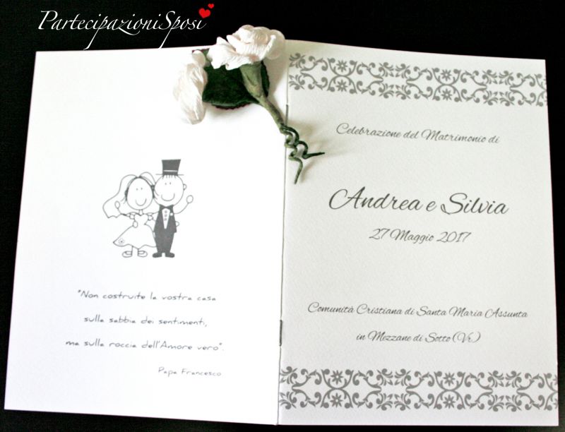 Libretto cerimonia con copertina in cartoncino Bianco martellato con stampa a un colore e greca.