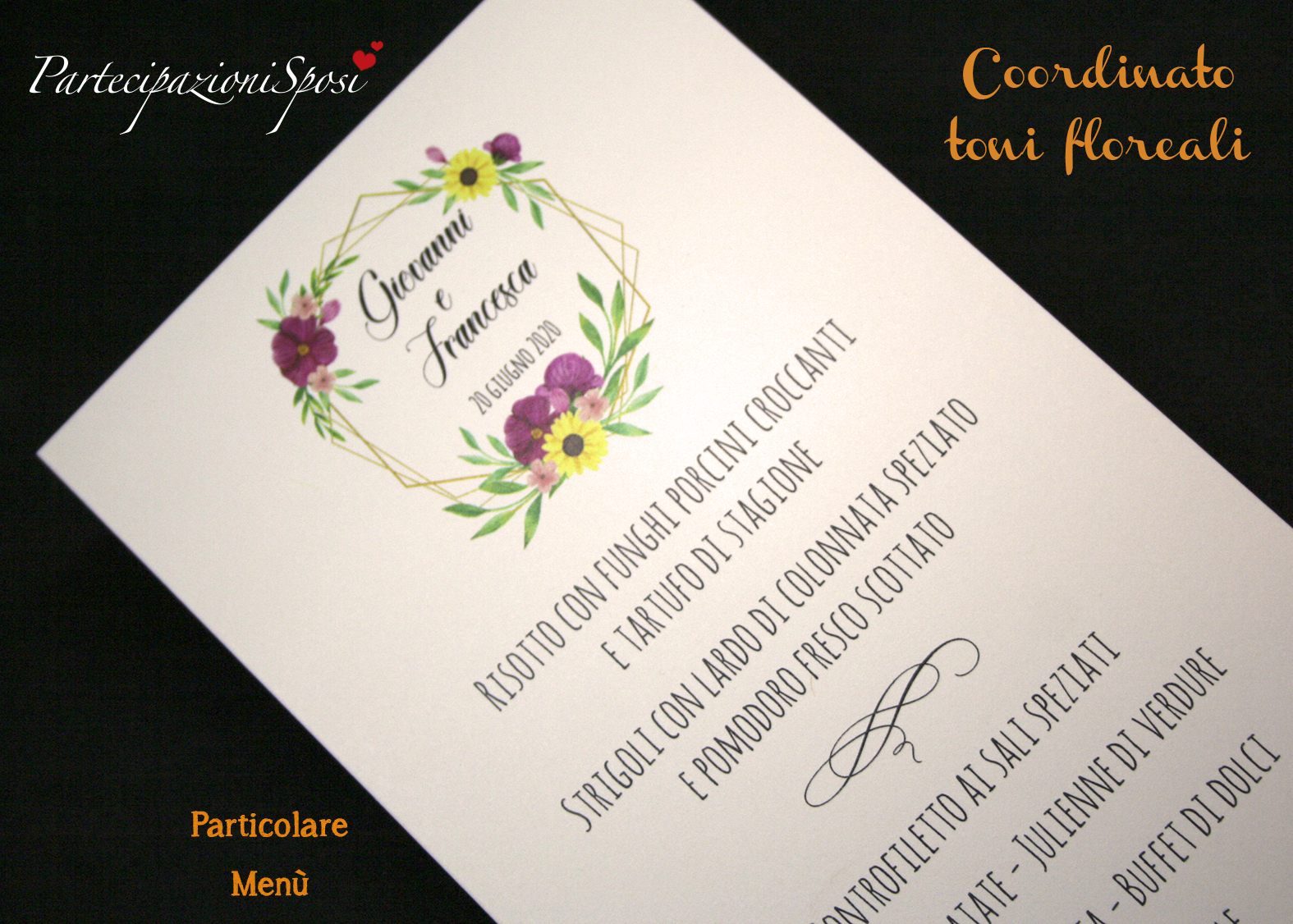 Eleganti e moderni menu da abbinare alle partecipazioni della categoria "coordinati in formato quadrato" codice 305.