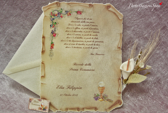Le frasi di prima comunione da inserire nelle bomboniere da comunione possono essere anche ideate dal cliente, sempre sotto attenta supervisione degli esperti del sito.
