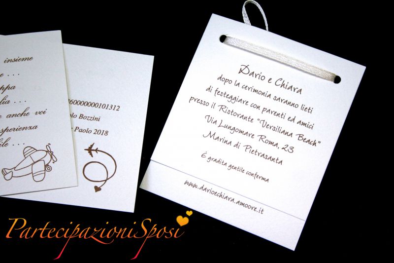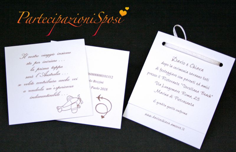 E’ importante creare un cartoncino invito che sia discreto e in tema con gli annunci di nozze, e che non dia subito nell’occhio ma che comunque sia presente per dare tutte le indicazioni soprattutto se si tratta di codici IBAN.